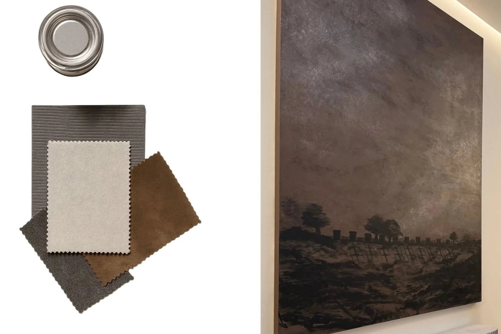 From your brief, we develop initial concepts and create a mock-up of the artwork, allowing you to visualise how it will look in situ. The final composition, scale, and palette are refined and confirmed before painting begins. We also offer tailored colour matching to ensure the artwork harmonises seamlessly with your interiors.