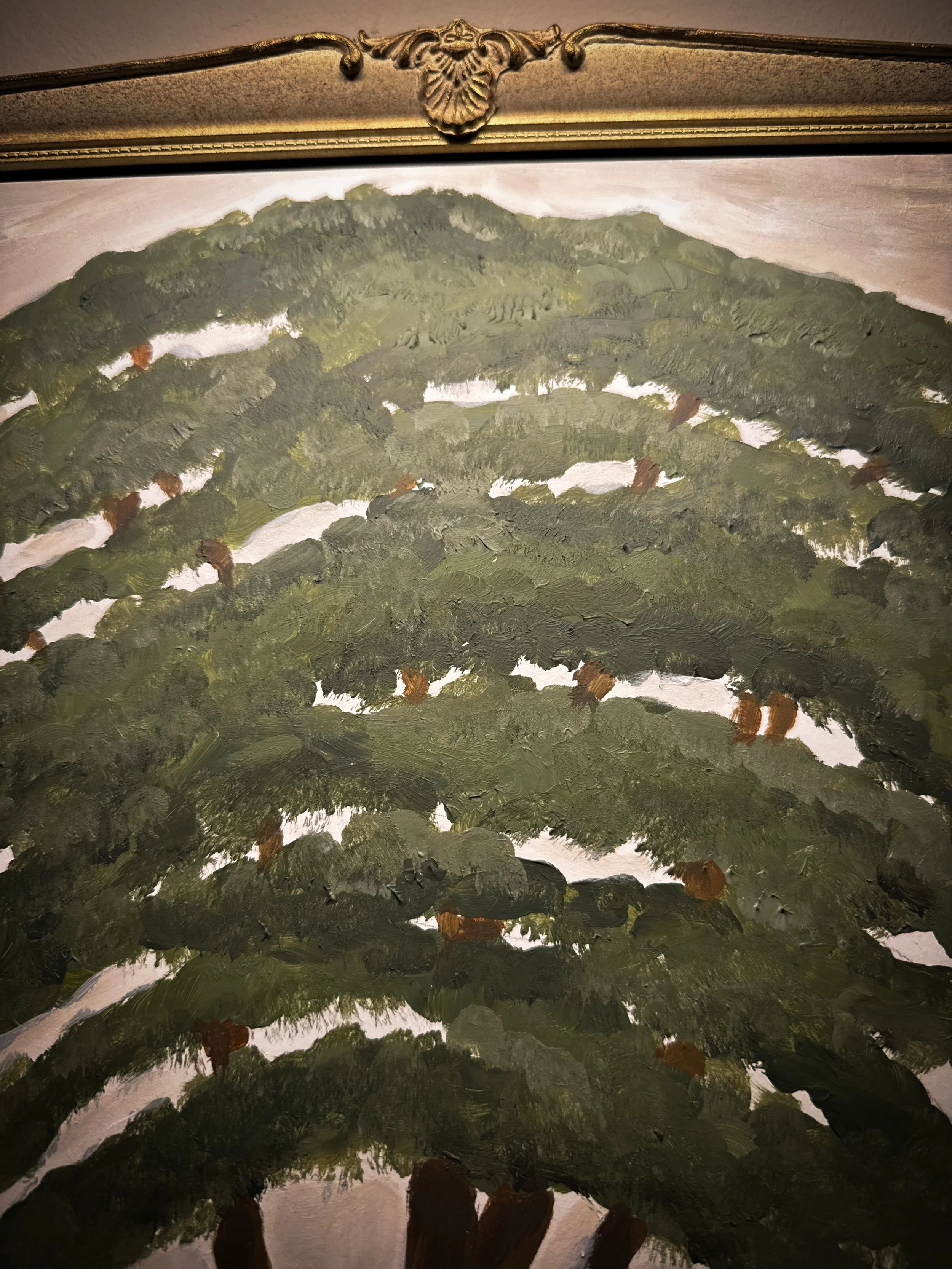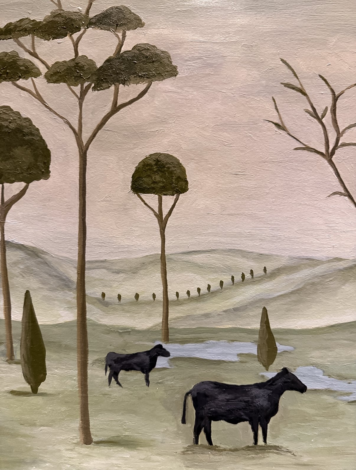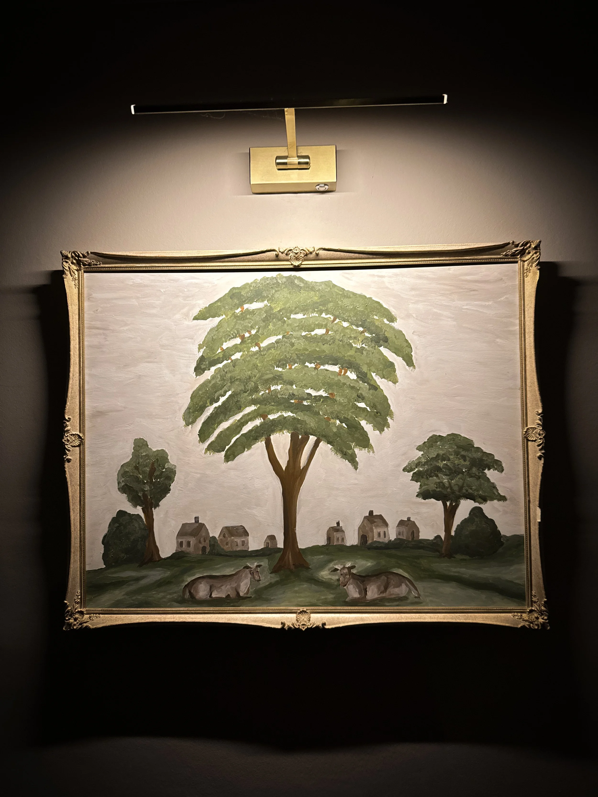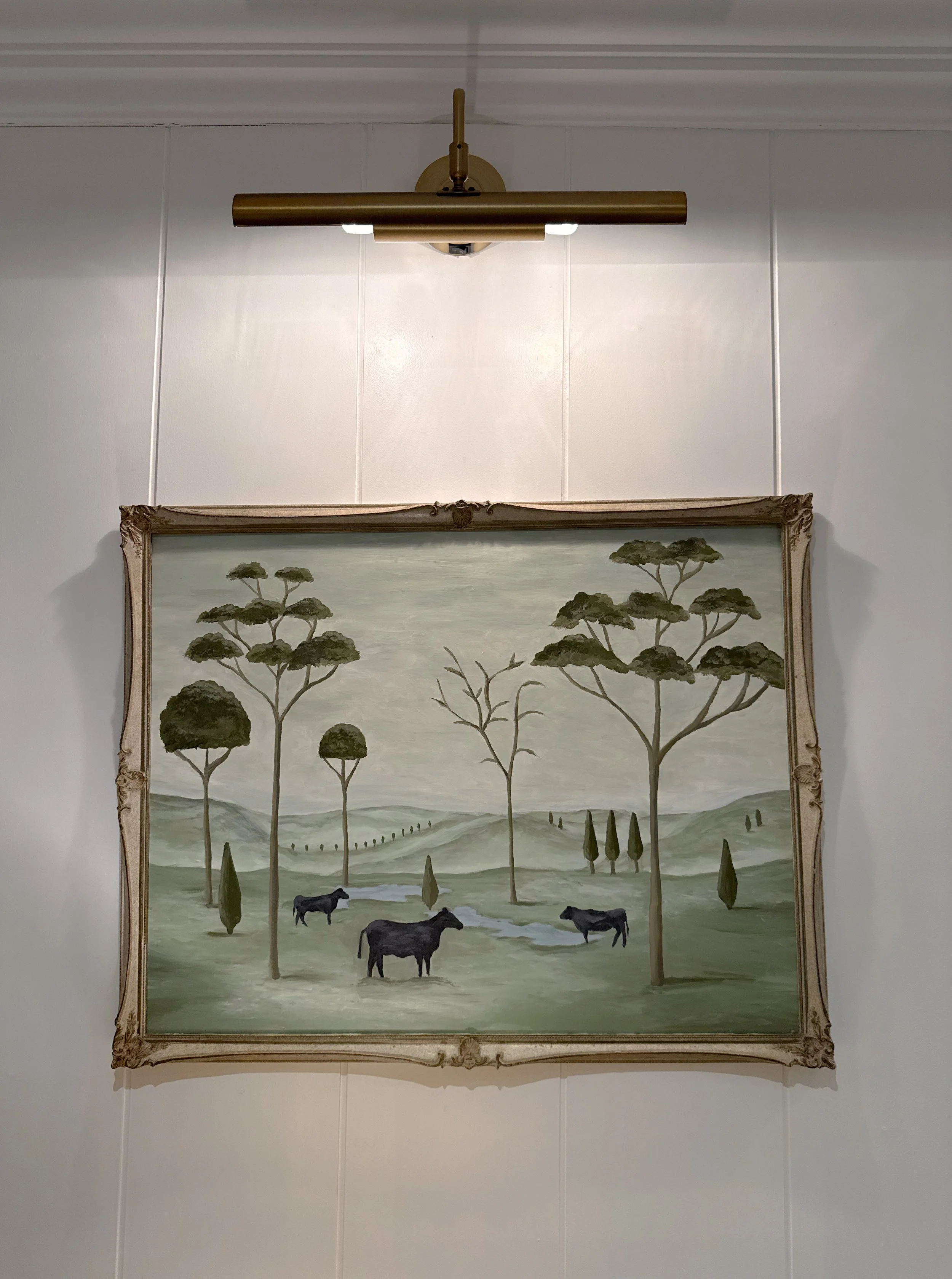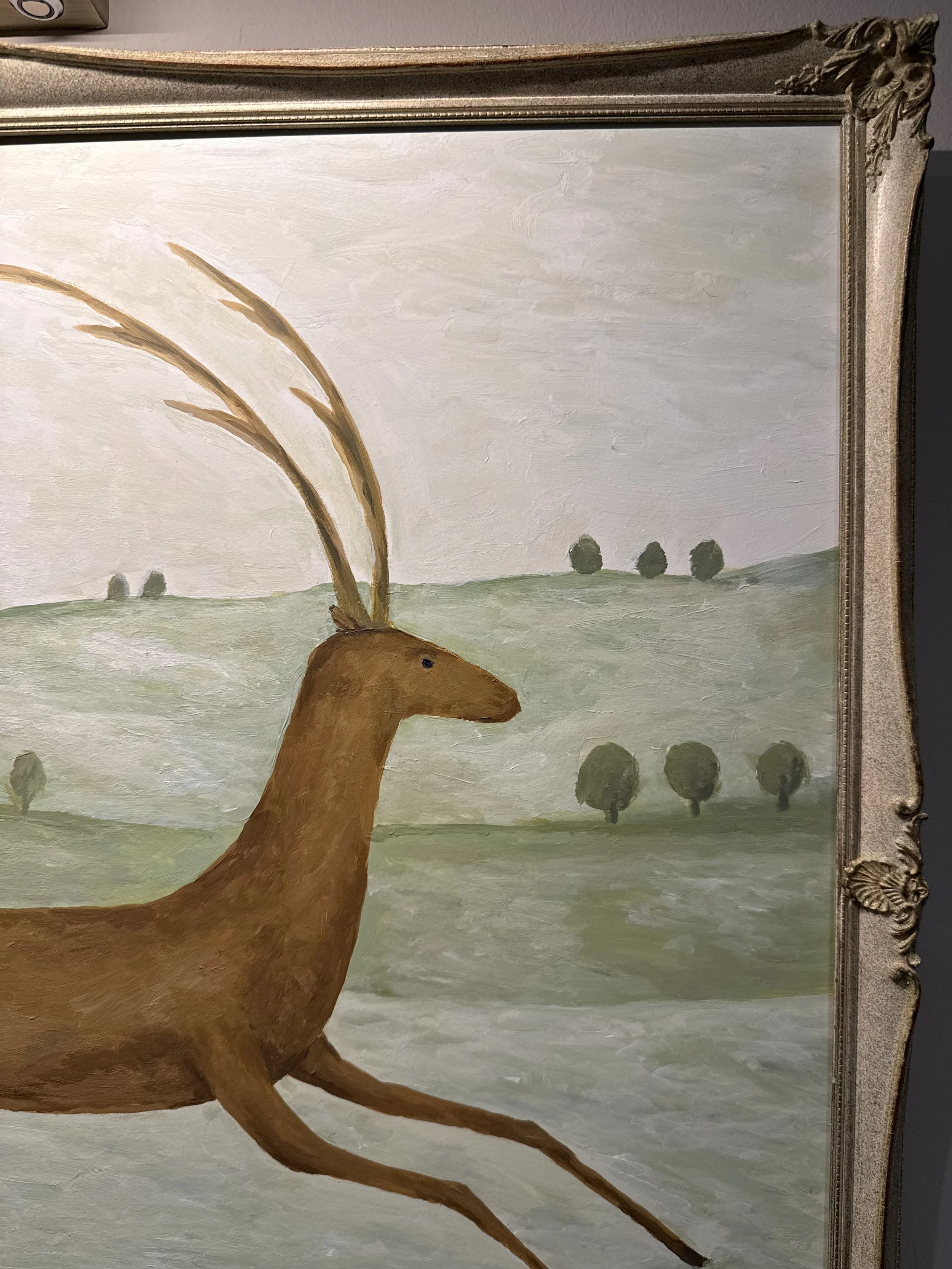 Inspired by primitive artworks and traditional landscapes, this collection captures quiet movement in nature painted inside ornate antique frames.